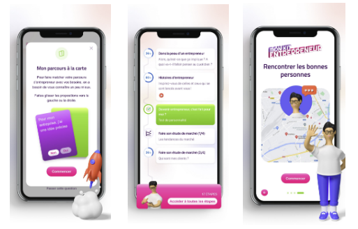 Suite au swipe, vous accédez à un parcours personnalisé, qui contient entre 1 et 25 étapes : déterminer son offre, étudier le marché, chercher un local, calculer ses besoins en financement, se faire connaître… A chaque fois, des conseils d’experts puis des défis à réaliser, sur l'application ou dans la vraie vie !